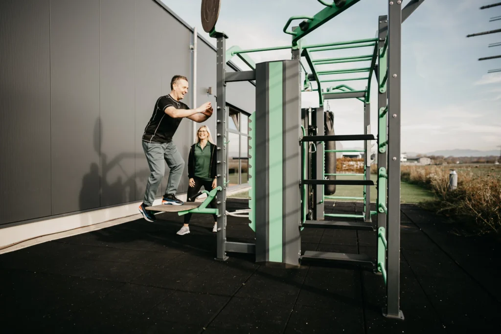 Die Folgen des modernen Lebensstils spürt fast jeder. Durch den bewegungsarmen Alltag verkürzen Brust-, Hüft- und Beinmuskulatur und es kommt zu Rücken- und Gelenkproblemen. Eine aufrechte Haltung wird immer mühsamer. Hier hilft Beweglichkeitstraining. Die Mobility-Station bietet über 20 Dehnübungen.