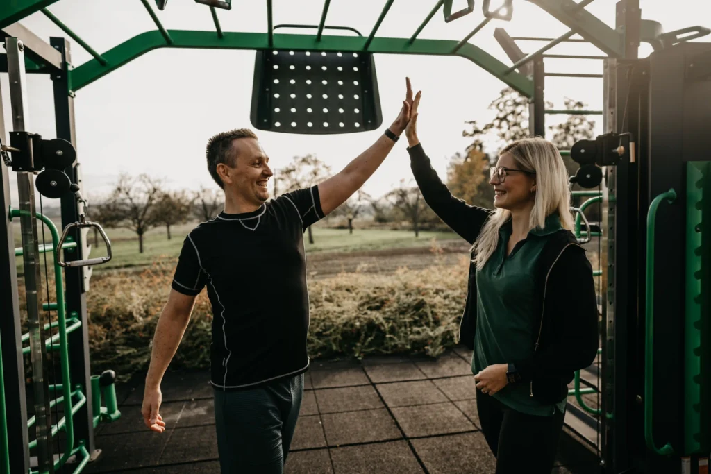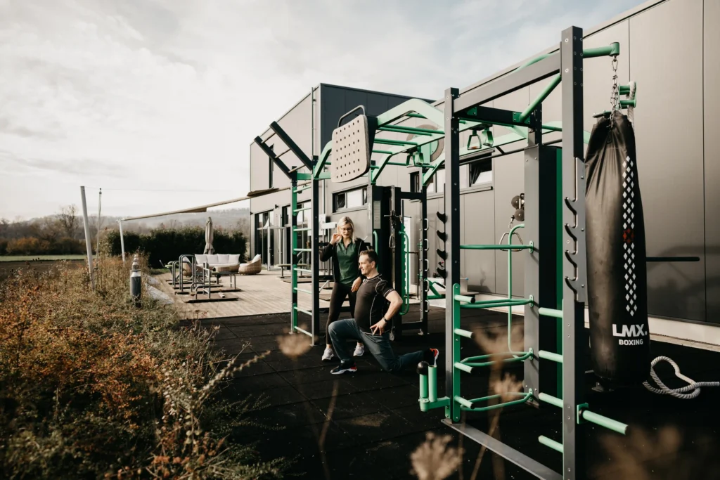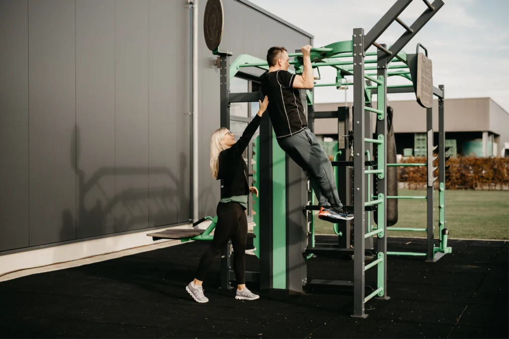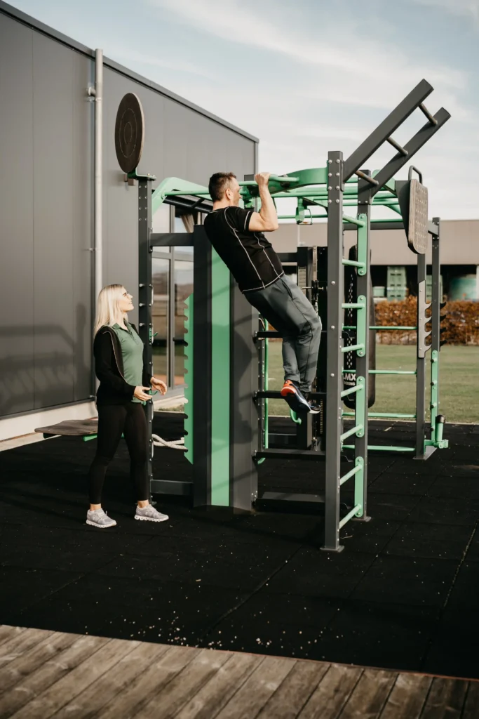 Bankdrücken unter freiem Himmel – das Glücksgefühl der neuen Freiheit. Hier fühlt man sich auf der Hantelbank wie am „muscle beach“. Und das Training mit dem eigenen Körpergewicht ist und bleibt eine spezielle Herausforderung. Ob untrainiert oder Athlet: Im OUTDOOR · CAMPUS findet jeder sein Level.